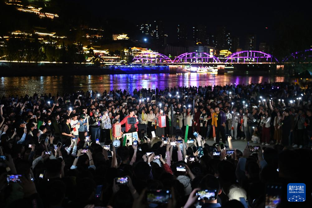4月23日,在兰州市城关区的黄河兰州段近水平台,市民及游客参与“兰州黄河大合唱”活动。 随着天气回暖,兰州黄河风情线大景区管理委员会邀请音乐爱好者,在黄河兰州段近水平台采用领唱、大合唱等方式开展“兰州黄河大合唱”活动,吸引大批市民和游客参与互动,为夜游兰州增添新体验。 新华社记者 范培珅 摄 4月23日,在兰发表于 2024-04-26 15:24黄河旅游