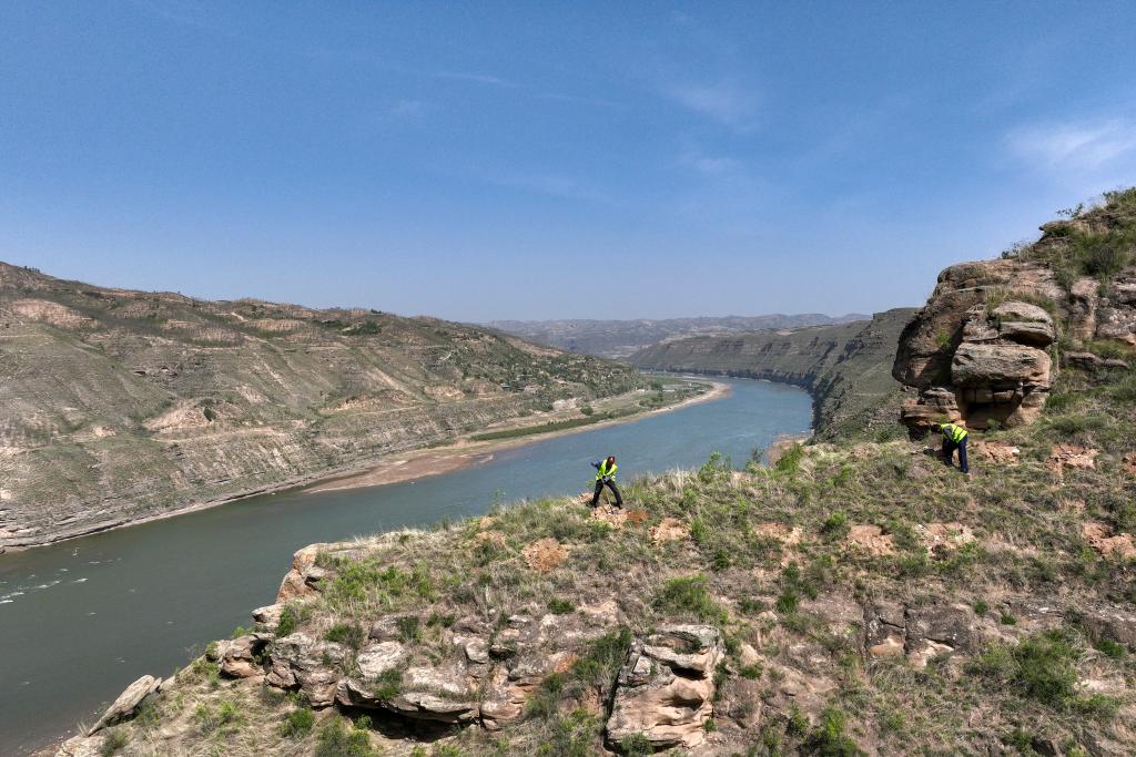 植树工人在山西省石楼县沿黄一号旅游公路边的山上植树(无人机照片,4月26日摄)。 黄河岸边,群山连绵。在山西省吕梁市石楼县沿黄一号旅游公路边的荒山荒坡上,有一群忙碌的“植绿人”。他们身背树苗,手持锄头,在悬崖峭壁间行走,为缺林少绿的荒山荒坡植树添绿。 石楼县地处黄河中游东岸,吕梁山西麓,境内沟壑纵横,地形破碎,植树造林难度较大。在发表于 2024-04-28 16:45生态环保