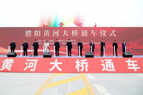 3月18日,由中建六局投资建设运营的黄河公路大桥在濮阳黄河大桥收费站广场举行通车仪式。省道304濮阳黄河公路大桥及接线工程全长约14.065公里,设9641米黄河特大桥1座,黄河大桥采用双向6车道,设计时速100公里每小时,总投资31.65亿元。建设过程中,项目团队克服了跨省跨黄河施工,技术要求高等多种困难,创新采用了装配式波形钢腹板组合箱梁进行施工,是国内首座大规模应用波形钢腹板组合箱梁的跨黄河